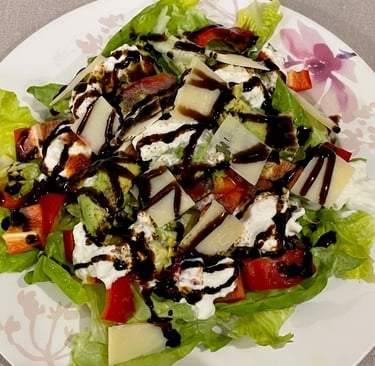 To finish, I drizzle aceto balsamico on top. Sometimes I add a little olive oil, salt, and pepper, depending on the taste I want that day.