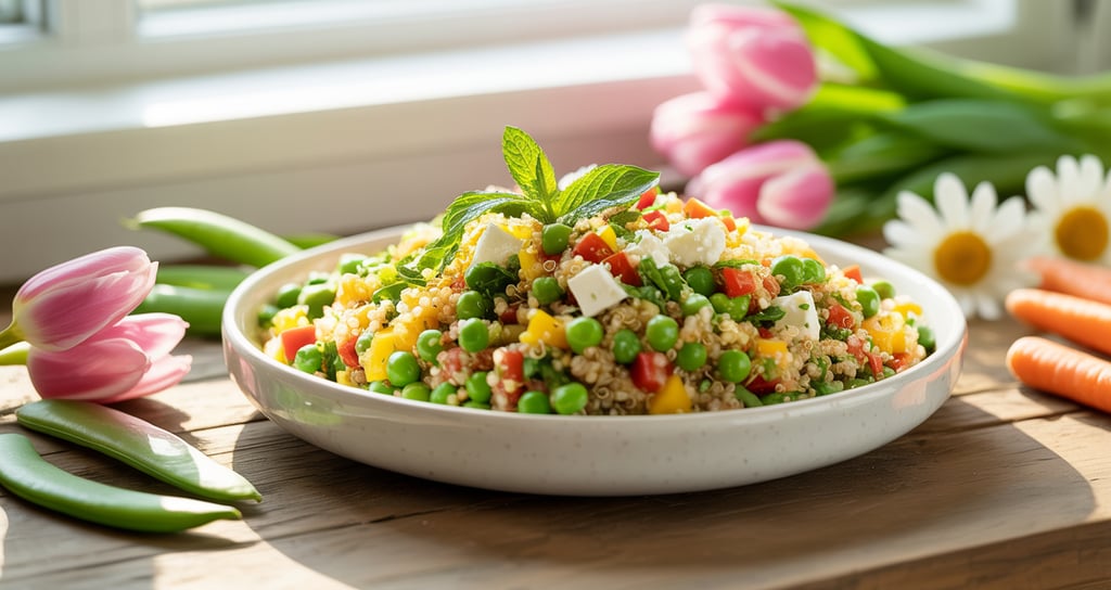 Spring Veggie Quinoa Salad - keep dressing separate until serving.